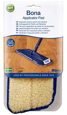 Do aplikacji środka do odświeżania powierzchni drewnianych i past Bona. Można go prać w pralce i używać wielokrotnie. Mocowany na mopa Bona na rzep.